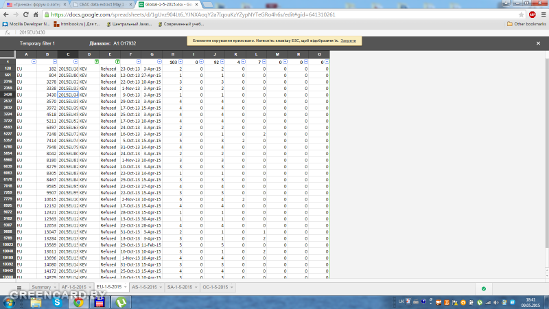 Я смотрела по последней табл. от 01.05. Сделала сортировку по посольстве KEV и статусу refused. Результат 33 отказа в апреле и 1 в феврале